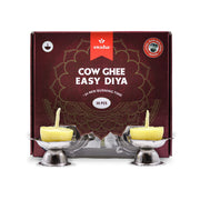 Cow Ghee Diya Gift Box - 30 Ghee Wicks & 2 Steel Diyas | 30min Burning Time | Wax Free Cow ghee Diya for puja | Swaha